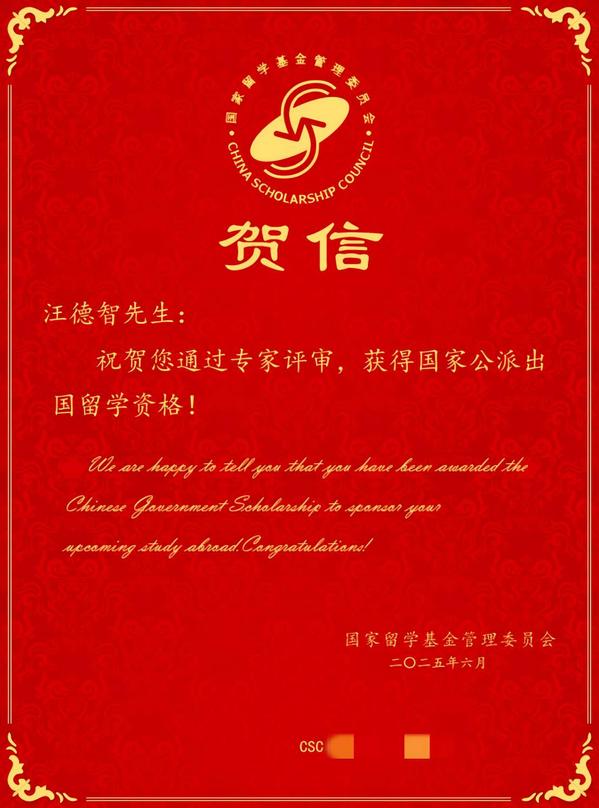A:首先,比较幸运的是,我在一硕阶段就获得过CSC奖学金。若有过往获奖经历,确实在再次申请中会有一定优势,但我也想提醒大家,CSC的录取存在一定不确定性,评审因素较多,即使没有被录取,也请不要质疑自己的价值和能力。