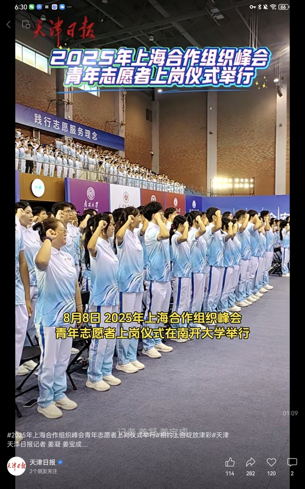 【天津日报视频号】报道上合峰会青年志愿者上岗仪式举行,我校学生志愿者代表接受媒体采访