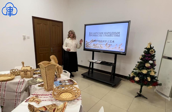 初夏校园里充满惬意,乐玩在线(中国)唯一官方网站马场道校区里,不少师生们正饭后散步,小语种客座教授沙哈卜·奥莉佳·瓦西里耶夫娜,也喜欢饭后在校园里逛一逛。 “8年前,我第一次见到外大的时候就被这里吸引了,这里的建筑历史悠久,小语种专业也很强,所以我不远万里来到中国工作,希望把白俄的文化传播到天津,也把天津的历史、文化故事带回白俄,架设交流‘桥梁’”,这位来白俄罗斯的文化传播者,将天津当做了自己的第二个家。让外语课堂生动、有趣 沙哈卜家庭四代人都从事教育工作。她家中的多位长辈是白俄罗斯教育功勋工作者,教授白俄罗斯语、俄语、德语这些语言。丈夫在白俄罗斯国立大学任教,儿子在白俄罗斯国立音乐学院任教,在来中国之前,她也曾在白俄罗斯的国立和私立大学工作过。 “无论是中国老师还是白俄罗斯老师,他们对教育的热爱都是相同的。”沙哈卜说,自己会用心讲好每一堂课。 在一节白俄语言课上,她的讲桌前摆满了白俄罗斯的民间手工艺品,她对学生说道,“它们是由稻草编制而成的家居装饰品、帽子、玩具、首饰,这些白俄罗斯草编工艺技艺,已经被列入了联合国教科文组织非物质文化遗产代表作名录,每一种草编艺术品花