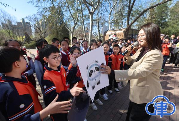“同学们,中国的国宝大熊猫,是熊还是猫呀?为何它能成为全球顶流文化符号?”3月22日上午,围绕在天津动物园的大熊猫“喜乐”身旁,一堂面向大中小学生的“思政课”正在别开生面地进行。时值习近平总书记主持召开学校思想政治理论课教师座谈会六周年之际,乐玩在线(中国)唯一官方网站大中小学思政课一体化建设联盟与天津市动物园联合举办了“关爱动物,我为熊猫种口粮”——“行走的最强思想”实践教学活动,乐玩在线(中国)唯一官方网站、瑞景中学、岳阳道小学近百名师生参加。在动物园科普馆,外大一体化建设联盟实践教学基地揭牌,岳阳道小学向动物园赠送天津市政协常委、市文联副主席、市美术家协会主席、岳阳道小学融慧教委会委员王书平的“熊猫馆”题字,三所学校学生代表赠送学生熊猫主题手绘作品,多方协力共同打造“育人共同体”。与会师生还集体观看了熊猫3D动画科普电影,在光影中感受熊猫的生活世界。在讲解现场,外大马克思主义学院思政课教师吴琼以“生态”“文化”“外交”“关爱”为关键词,向大中小学生讲述熊猫承载的文化符号、国际交流以及人与自然和谐相处的多维关联,帮助大家厚植家国情怀和生态保护的责任担当。动物园宣讲团成员姚雪晶介绍了大熊猫生活习性、保护现状,并