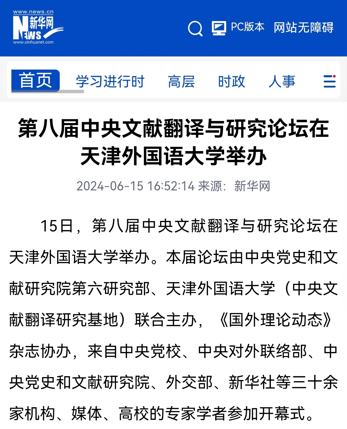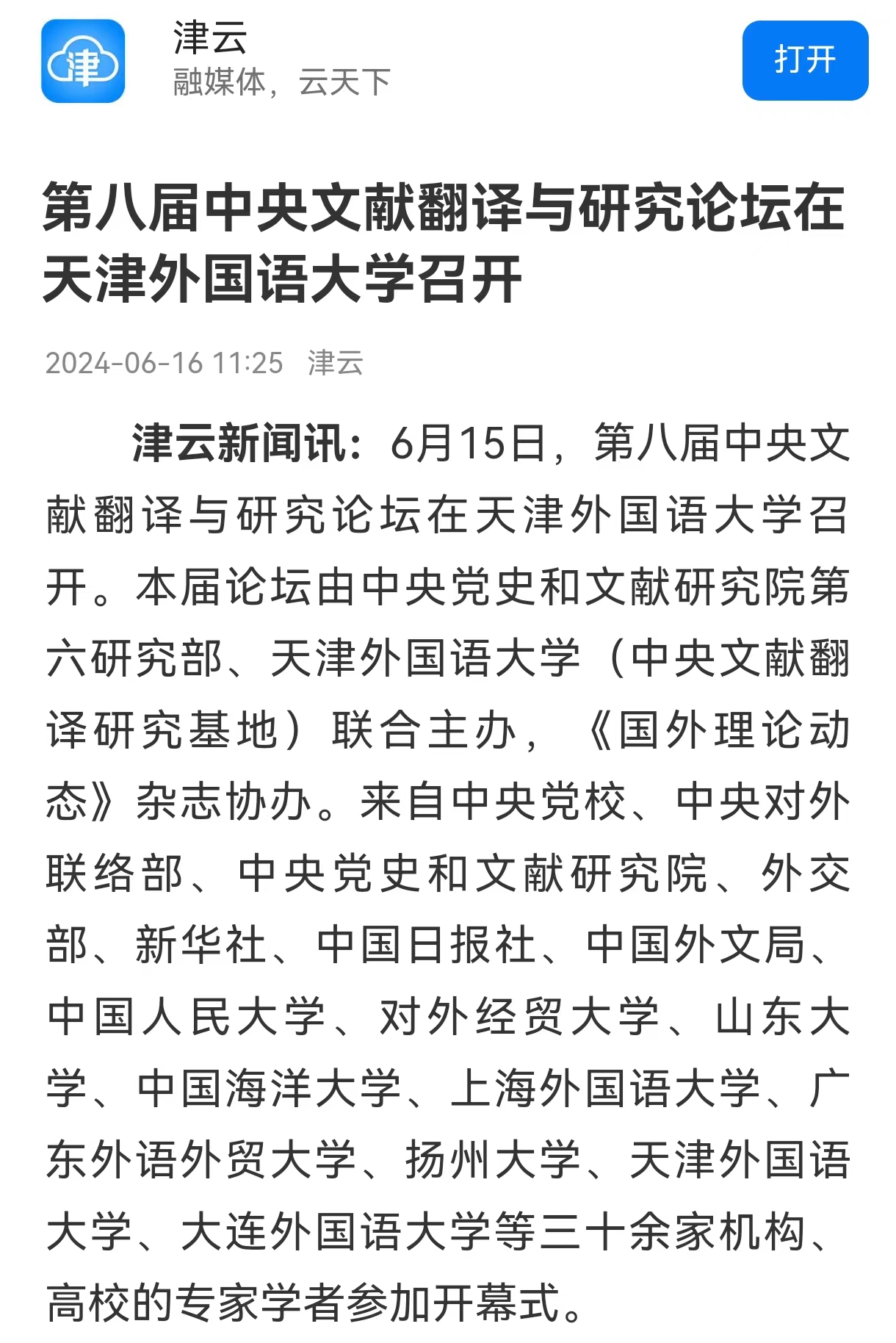 6月15日,第八届中央文献翻译与研究论坛在乐玩在线(中国)唯一官方网站召开。本届论坛由中央党史和文献研究院第六研究部、乐玩在线(中国)唯一官方网站(中央文献翻译研究基地)联合主办,《国外理论动态》杂志协办。来自中央党校、中央对外联络部、中央党史和文献研究院、外交部、新华社、中国日报社、中国外文局、中国人民大学、对外经贸大学、山东大学、中国海洋大学、上海外国语大学、广东外语外贸大学、扬州大学、乐玩在线(中国)唯一官方网站、大连外国语大学等三十余家机构、高校的专家学者参加开幕式。本届论坛主题为“习近平新时代中国特色社会主义思想对外翻译与国际传播:规范与创新”,旨在深入探讨习近平新时代中国特色社会主义思想的对外翻译和国际传播实践、规范化翻译与创新性传播的经验与方法,同时聚集国内外翻译学者和研究专家,探讨和交流最新的研究成果。中央文献翻译与研究论坛创办于2015年,已成功举办七届,是国内关于政治文献对外翻译与研究的高端学术活动。论坛旨在为中央文献翻译和传播中重要问题的深入研讨搭建对话平台,为从事和关注中央文献翻译和传播的同仁提供交流合作平台,并成为中央文献翻译与研究重要成果的发布平台。新闻来源:https://www.app2020.