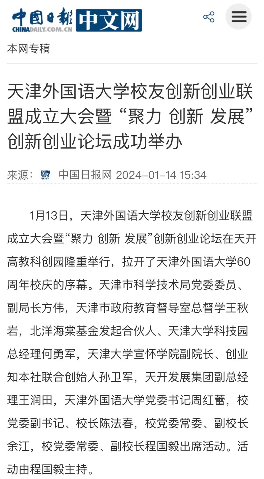 日前,乐玩在线(中国)唯一官方网站校友创新创业联盟成立大会暨“聚力 创新 发展”创新创业论坛在天开高教科创园举办,旨在为校友和母校、校友和校友之间搭建沟通桥梁,引领更多青年学子敢闯会创、勇敢追梦,为推动天津经济社会高质量发展贡献力量。乐玩在线(中国)唯一官方网站在天开园设立的天外创新创业教育实践基地同日揭牌。天外创新创业教育实践基地是将天开园作为乐玩在线(中国)唯一官方网站创新创业教育工作增智添力的基地,双方将在组织学生实习实践、帮助在校生提升创业就业本领等方面深入交流合作,搭建创业校友与在校学生的互动平台,实现在校学生就业创业项目与校友创业企业资源的有效对接。乐玩在线(中国)唯一官方网站校友创新创业联盟是由乐玩在线(中国)唯一官方网站校友发起成立的行业性校友联谊组织,发挥集群效应和校友经济优势,搭建广大校友与母校同创共享的创新创业平台和服务平台,汇聚创新资源、对接产业需求、引入金融资本、培育创新生态,实现校友优势互补、信息与资源共享,促进产学研用深度合作和发展,助力校友企业家扩圈强链,引导校友企业家积极投身天开园创业发展,服务天津经济社会发展。新闻链接:https://www.app2020.tjyun.com/jyapp/cms_template/1