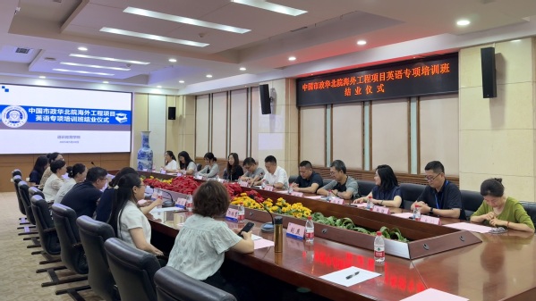 5月28日下午,中国市政华北院海外工程项目英语专项培训结业仪式在我校顺利举行。天外通识教育学院、中国市政工程华北设计研究总院有限公司相关负责人、培训教师代表及学员共同出席了本次仪式。仪式由通识教育学院副院长杨旸主持。通识教育学院党总支书记田洪武在致辞中表示,学院依托多语种、多学科优势,精心打造“工程英语+”课程体系,每一堂课都融入了教师团队对海外工程场景的深入调研与实践经验,力求让学员所学即所用。他表示,期待与中国市政华北院进一步深化“语言服务+工程实践”产学研合作,搭建定制化培训平台,为中国企业“走出去”提供全链条语言与文化支持。中国市政华北院第十三设计研究院院长谢宝来向学校的精心组织与专业教学表示感谢。他指出,此次培训恰逢企业拓展海外市场的关键时期,学员们通过系统学习,不仅提升了英语技能,更深入理解了跨文化沟通的重要性,为即将开展的海外项目奠定了坚实基础。他希望学员们将培训所学转化为实际工作中的竞争力,在国际舞台上展现中国工程人的专业素养与风采。培训教师代表回顾了课堂上的互动场景与学员的点滴进步,特别提到在商务谈判模拟、跨文化案例分析等实践环节中从“语言输入”到“场景输出”的蜕变。