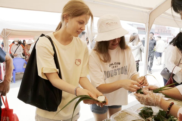 近日,天外与宁河区文旅局、宁河区潘庄镇政府合作,百名留学生走进宁河芦台大集和大贾生态农业产业园,沉浸式感受中国传统端午文化以及农耕文化的独特魅力。此次活动通过包粽子、非遗手工、赶大集、观民俗演出以及“玉米脱粒磨面”农事体验等多元形式,搭建起中外文化交流的生动平台,让留学生们在实践中触摸历史、感知当下,收获了一场难忘的文化之旅。活动当天,留学生们首先来到宁河芦台大集。在包粽子体验区,留学生围坐在长桌旁,学习传统粽子的包制技艺,从粽叶的折叠角度到馅料的配比,每一个细节力求精准,成功包出了棱角分明的粽子。戏台前的民俗演出精彩上演,留学生欣赏着川剧变脸、歌舞演唱等表演,演员们精湛的技艺、动听的唱腔,赢得阵阵掌声。留学生们还参与了非遗手作体验活动,在非遗手艺摊位前,他们认真聆听现场工作人员的讲解,用手中的工具创作,感受着中国传统文化的深厚底蕴和独特魅力。当天下午,同学们又来到了大贾生态农业产业园,体验全新升级的趣味游戏以及新增的“玉米脱粒磨面”农事体验等活动。留学生们与宁河区潘庄镇政府的年轻干部们开展了一场拔河友谊赛,尽管肤色不同、语言各异,但统一的口号声中,团队精神冲破国界。在园区导师的引领下